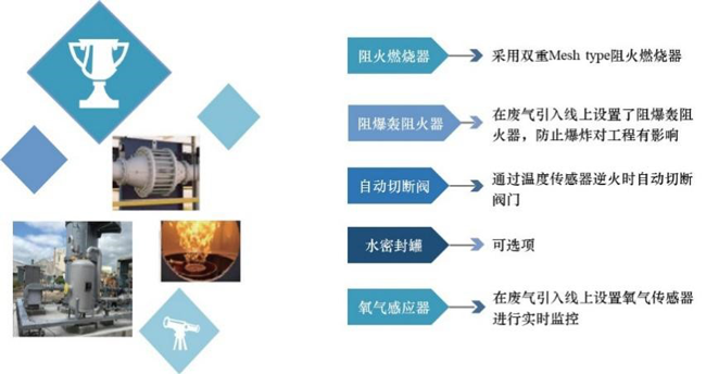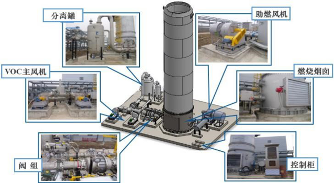 爆轟阻火器、VOC主風(fēng)機(jī)、助燃風(fēng)機(jī)、分離罐、VOCs燃燒器、燃燒煙囪